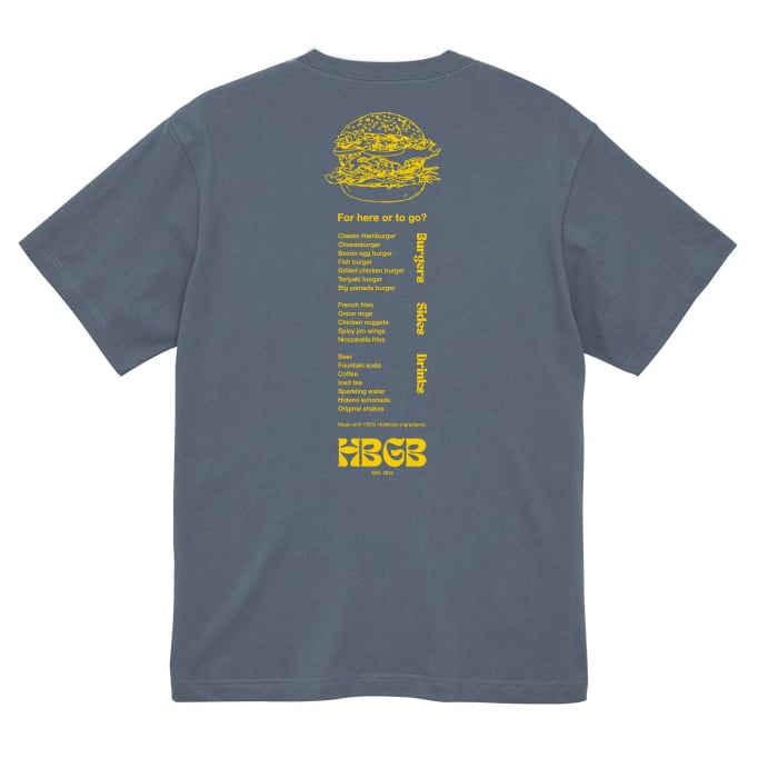 コンセプトはハンバーガーボーイズを表すHBGBという名の架空のハンバーガーショップのTシャツ!